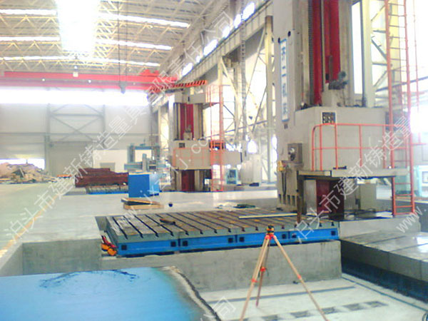 本產(chǎn)品是為齊二機床廠配套的落地鏜銑床平臺。落地鏜床工作臺是機床工作臺的一種,主要用于機床加工工作平面的使用,上面有孔和T型槽,用來固定工件和清理加工時產(chǎn)生的鐵屑,在工業(yè)生產(chǎn)中獲得廣泛應(yīng)用。