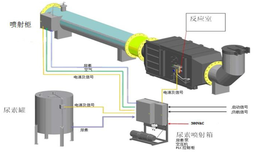 尿素經熱解、水解生成氨氣,為反應提供原料。